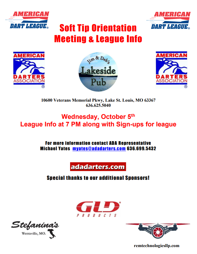 ADA Area 633 Soft Tip Orientation Tournament – Jim & Deb’s